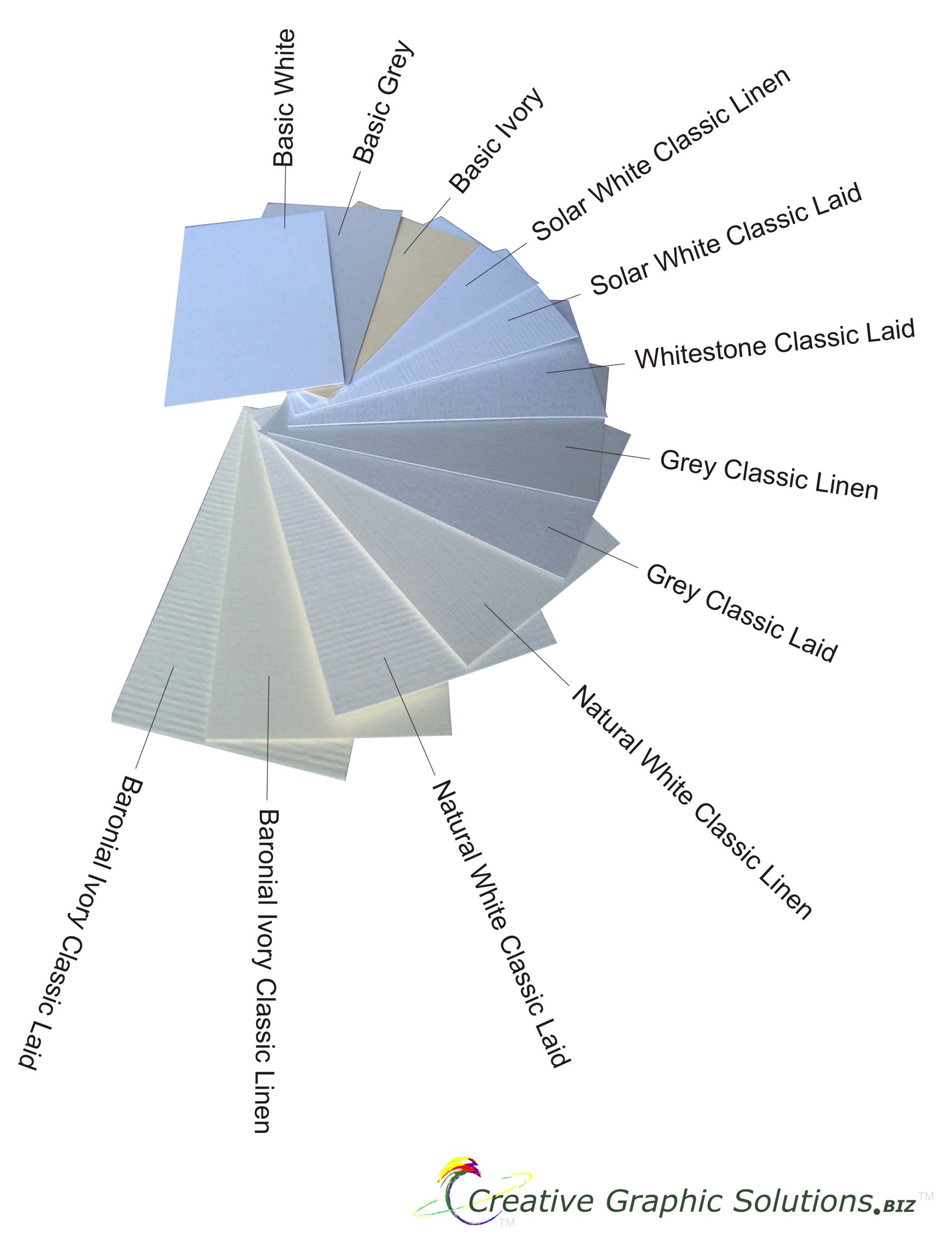 - Standard raised print business card stocks are Basic White, Basic Grey, and Basic Ivory.